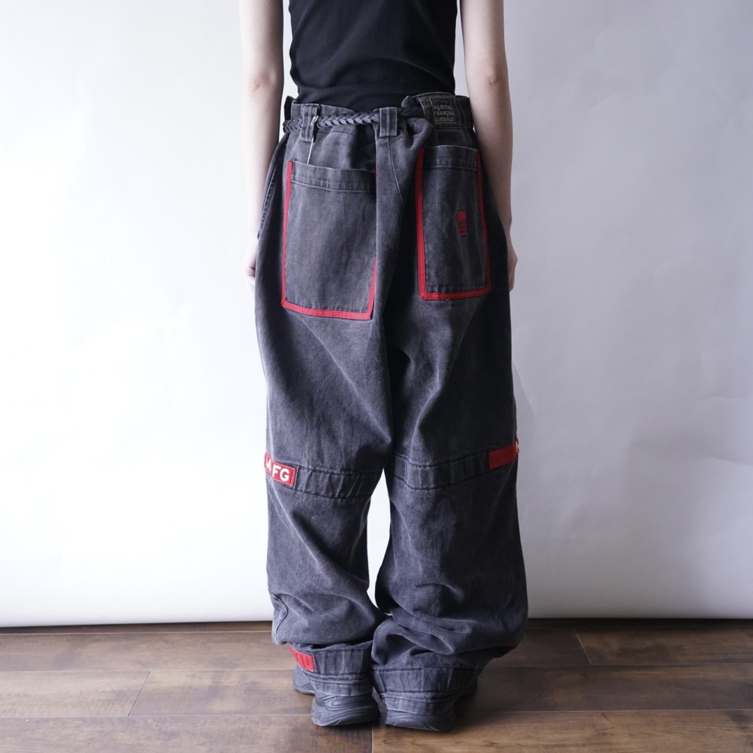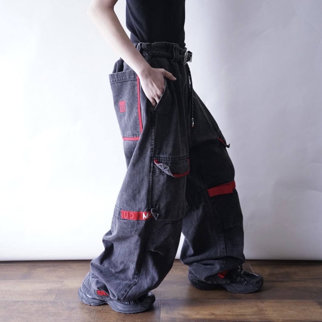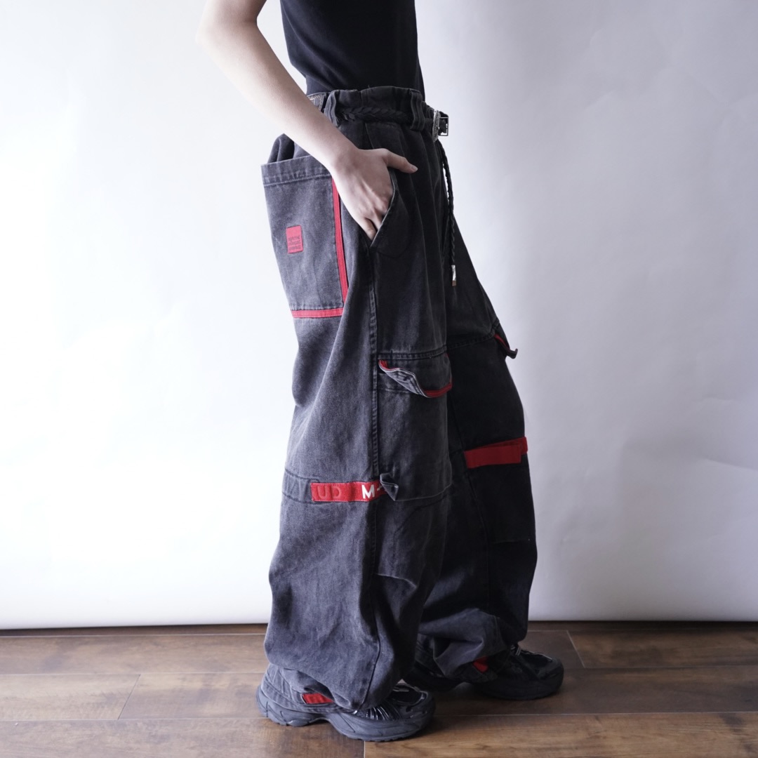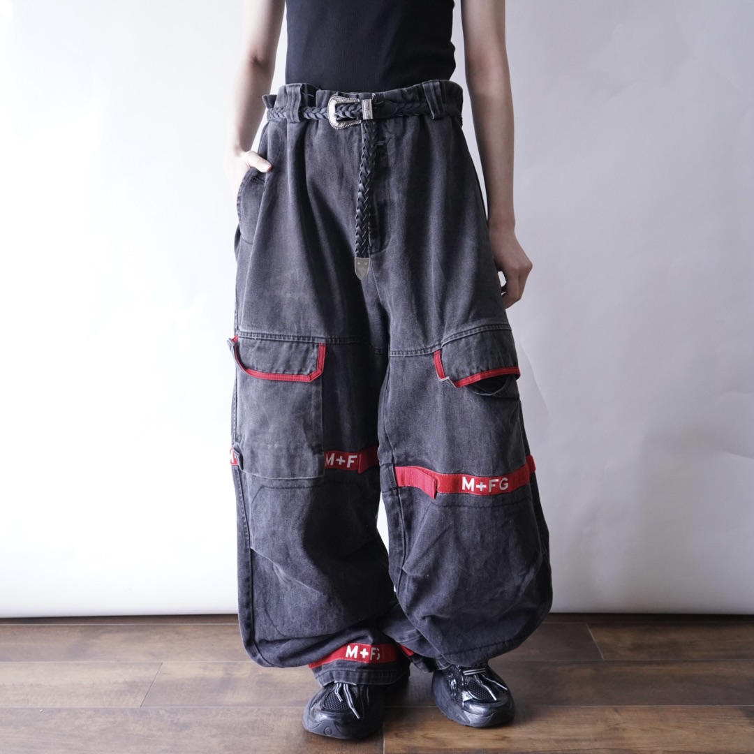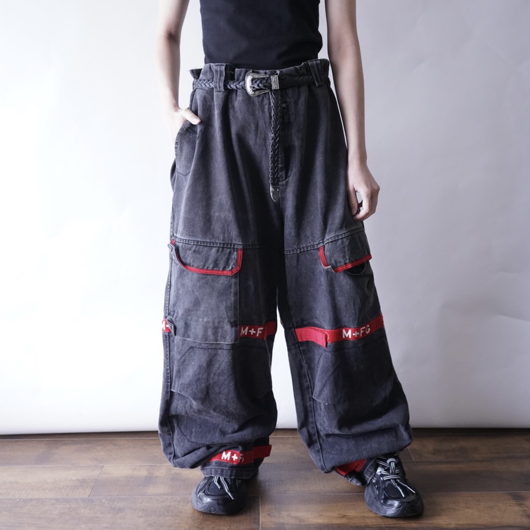 name -【MARITHE FRANCOIS GIRBAUD】red velcro × black denim wide baggy shuttle pants