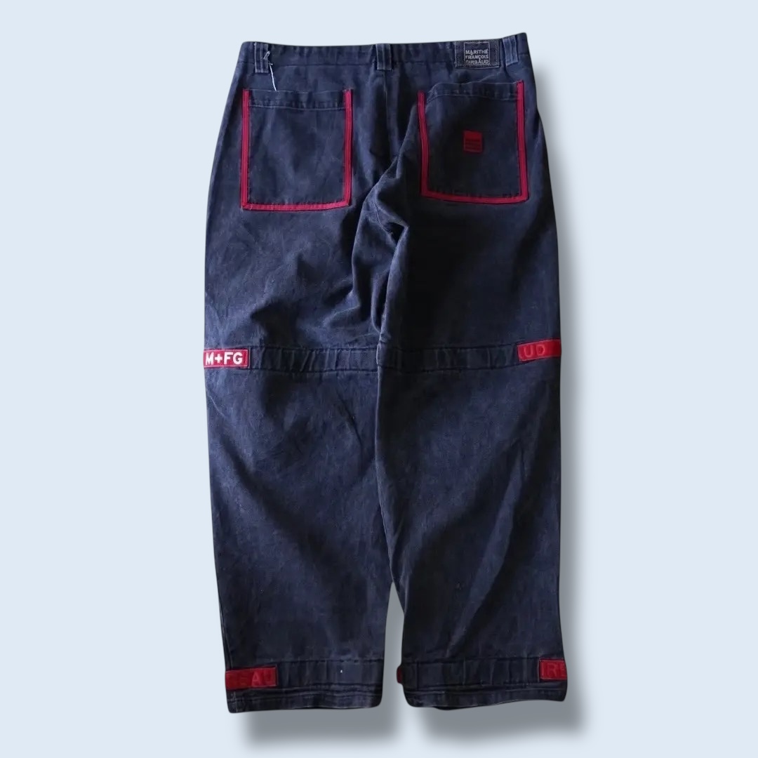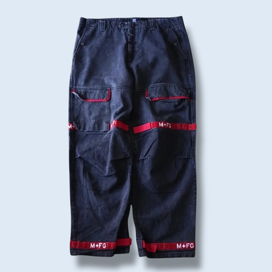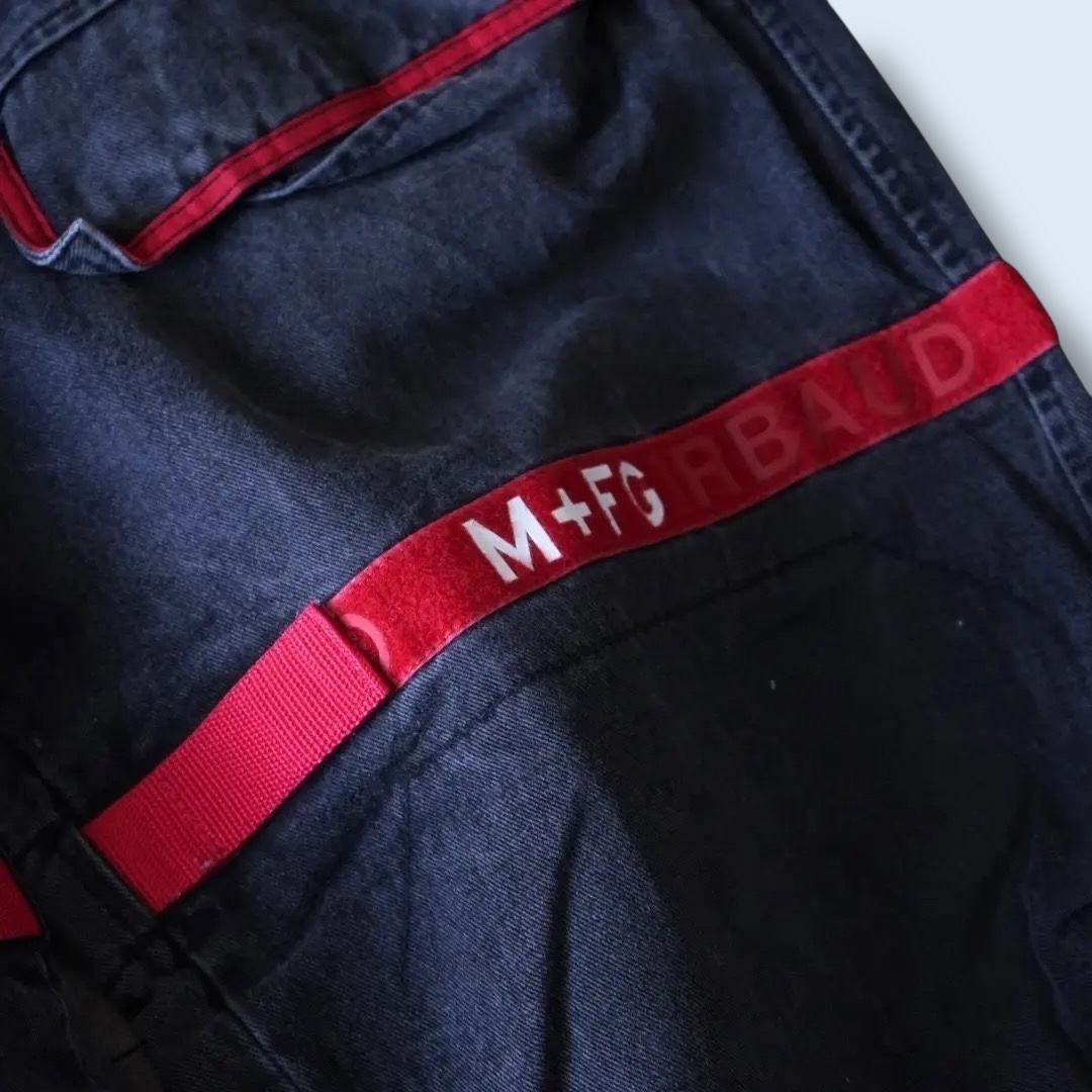 【MARITHE FRANCOIS GIRBAUD】red velcro × black denim wide baggy shuttle pants