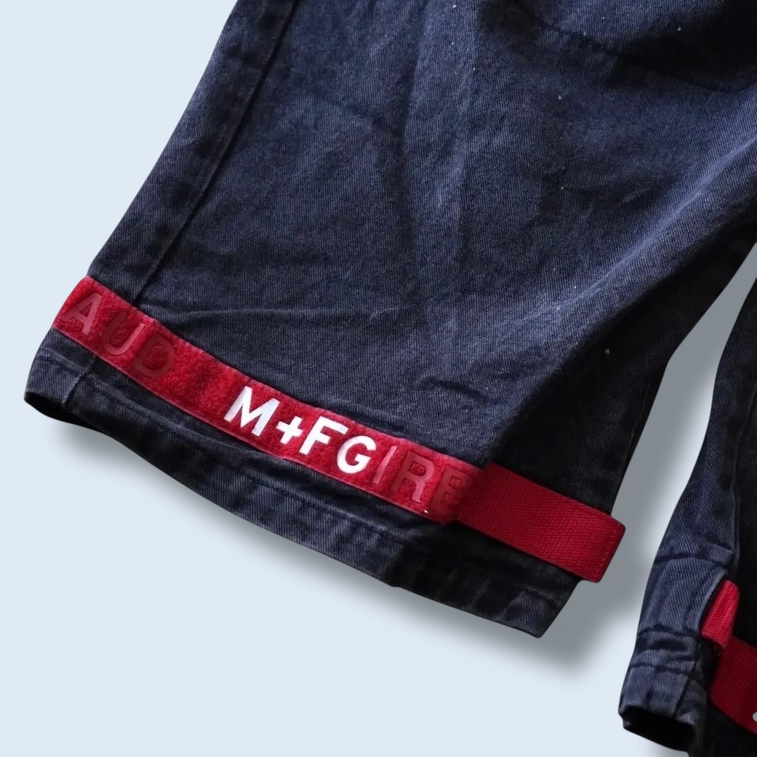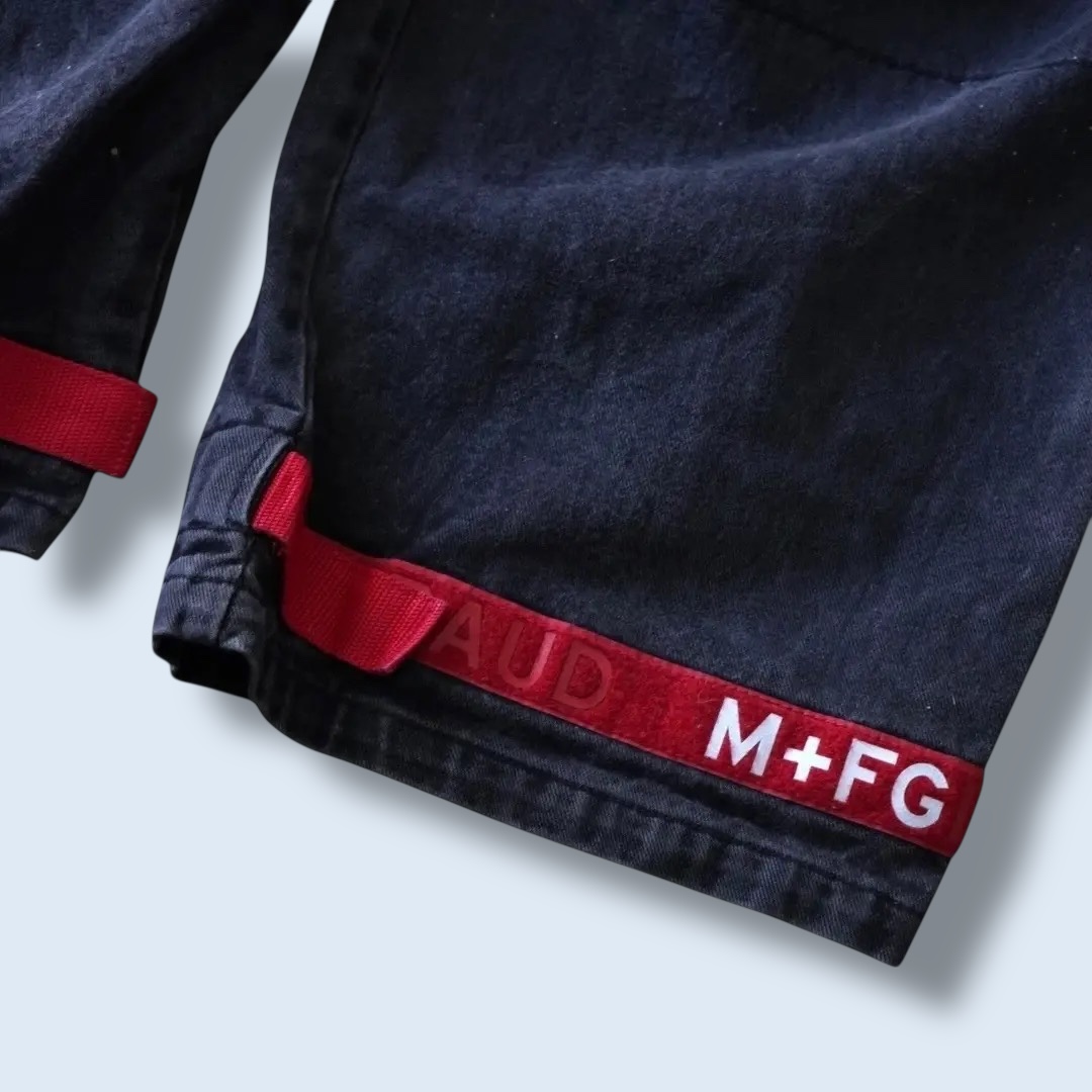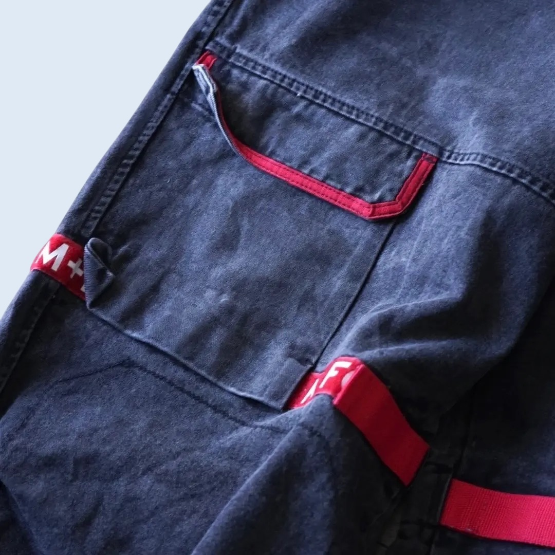 【MARITHE FRANCOIS GIRBAUD】red velcro × black denim wide baggy shuttle pants