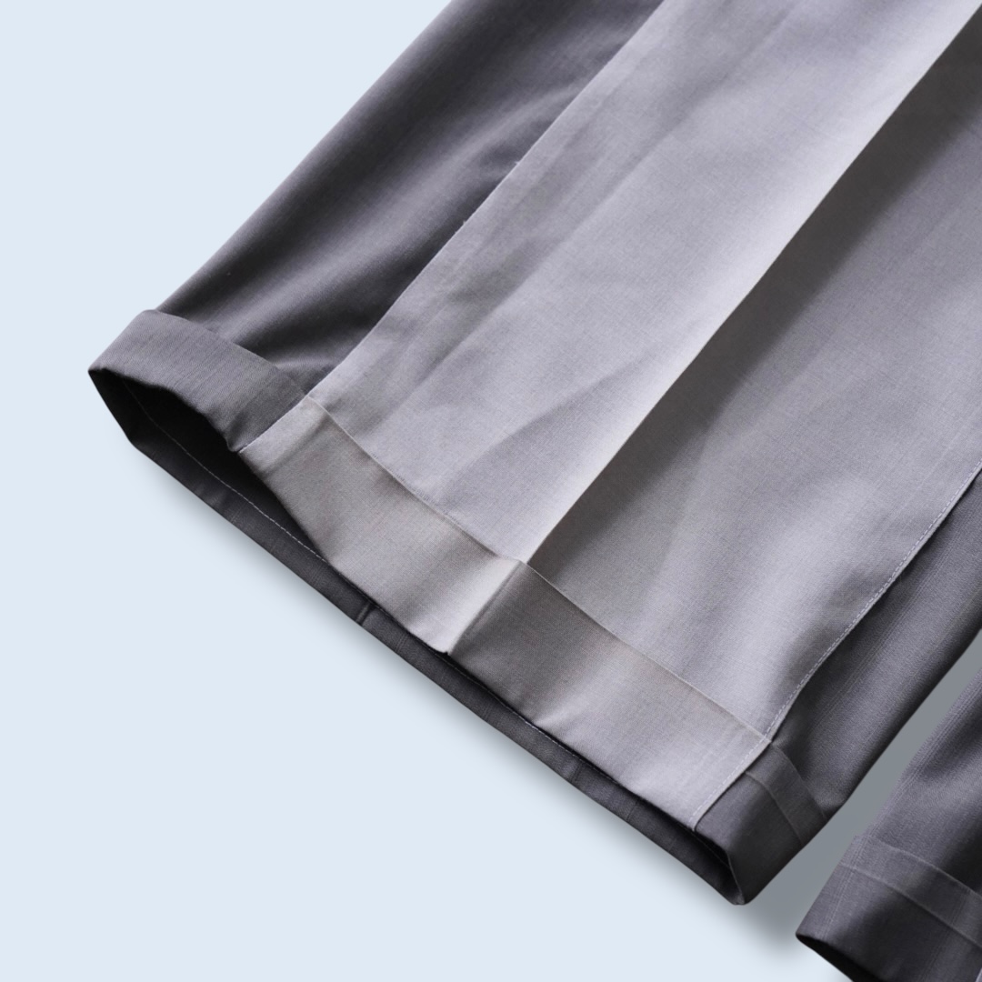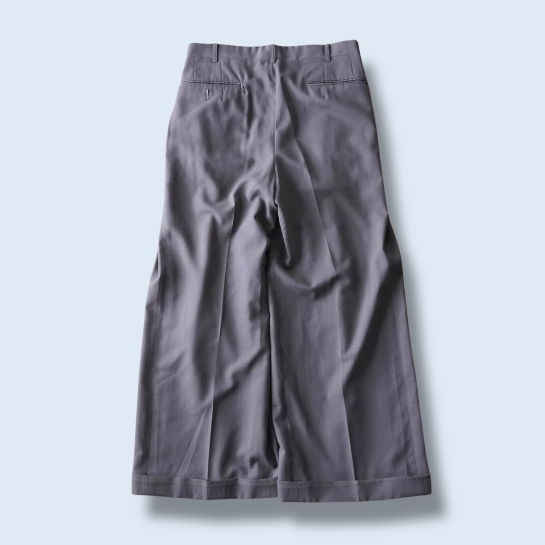 しっかりと効いたセンタープレスと裾ダブルのディテールで