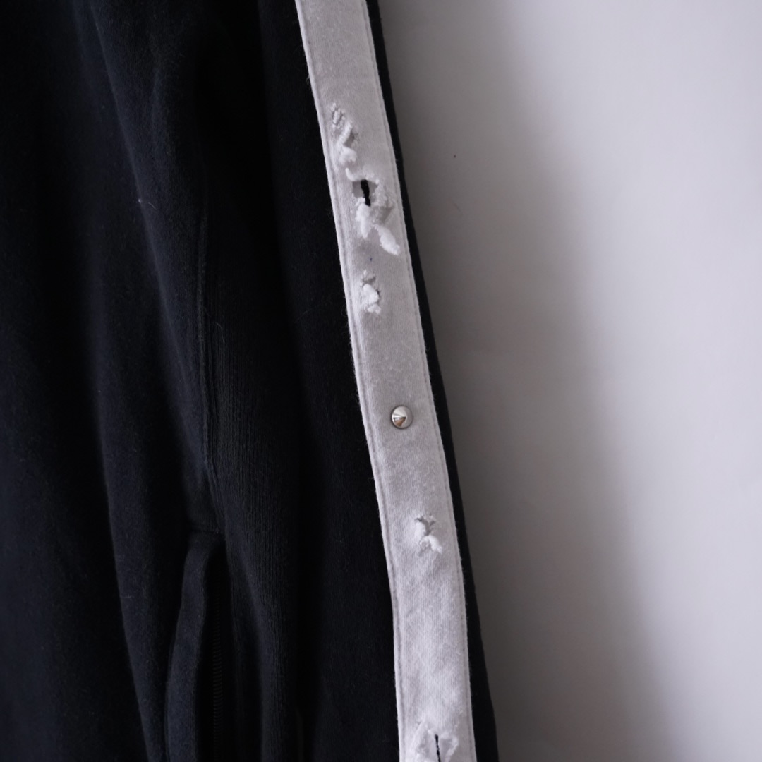貴重なスウェット生地だからこそのダメージ感、そしてパンク感を