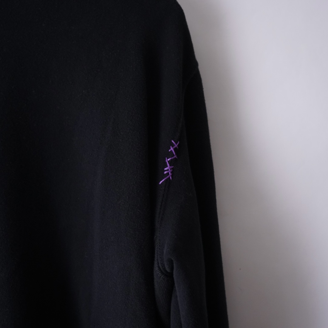 スタッズ、そして禍々しく垂れる紫の刺繍糸で混沌とした雰囲気に