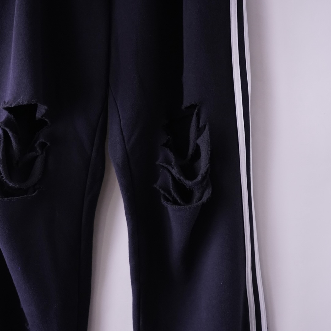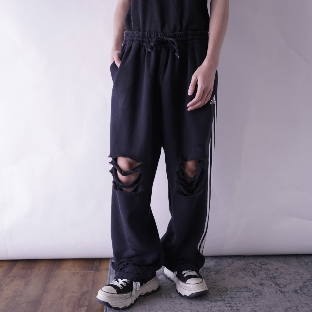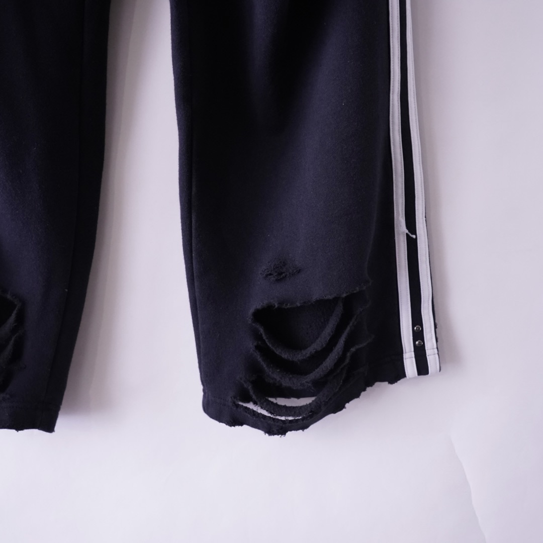 【Punk Crush Remake】”adidas” BORO & studs remake black wide sweat pants
