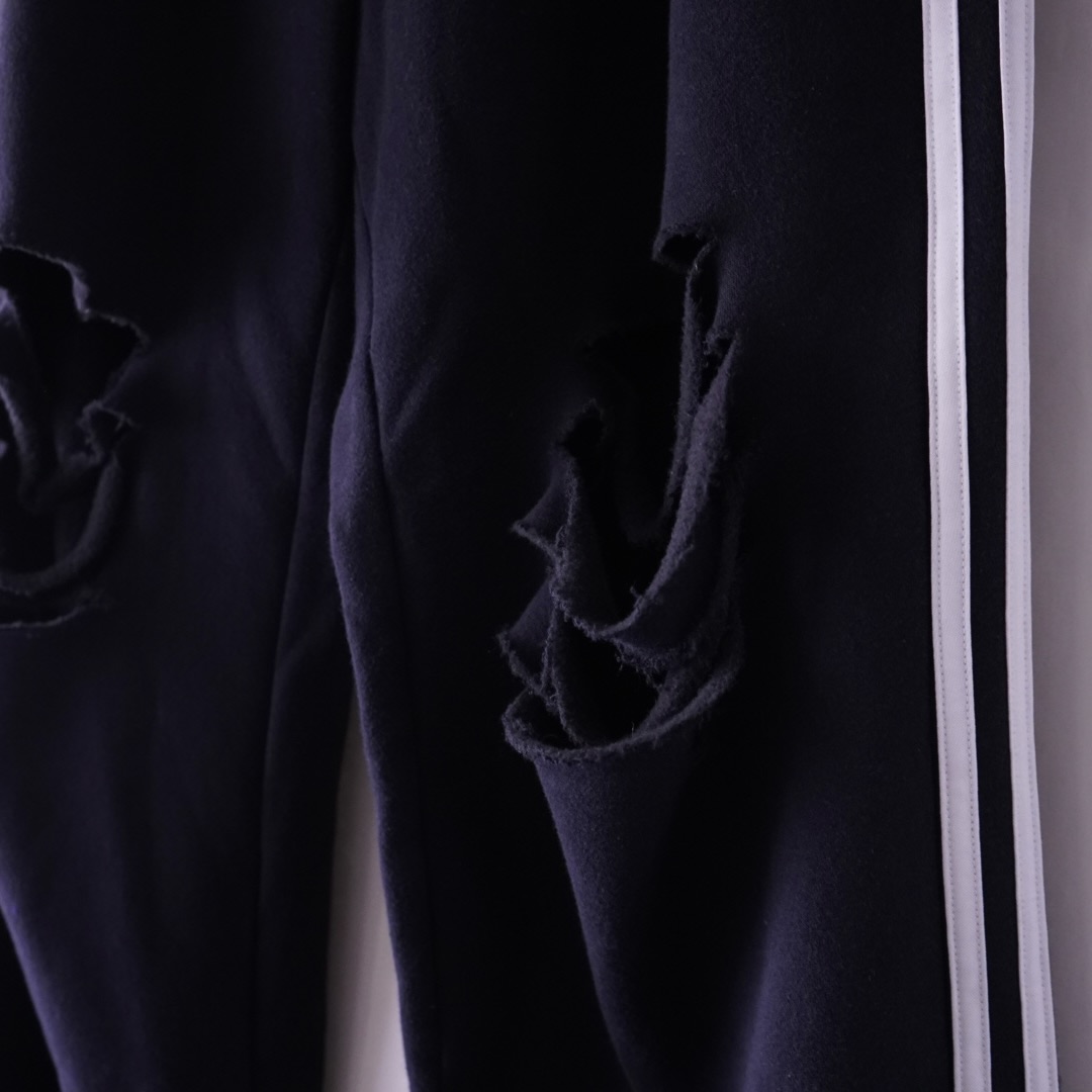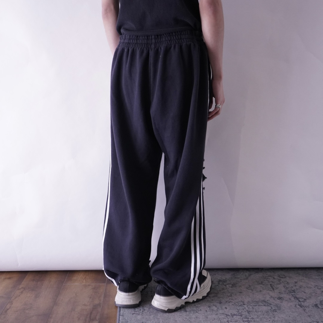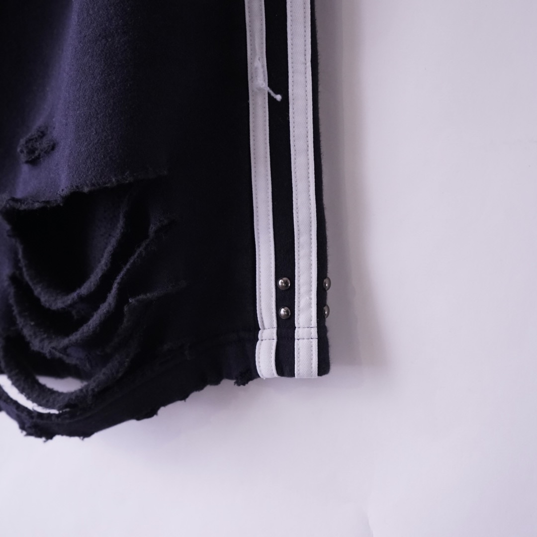 【Punk Crush Remake】”adidas” BORO & studs remake black wide sweat pants