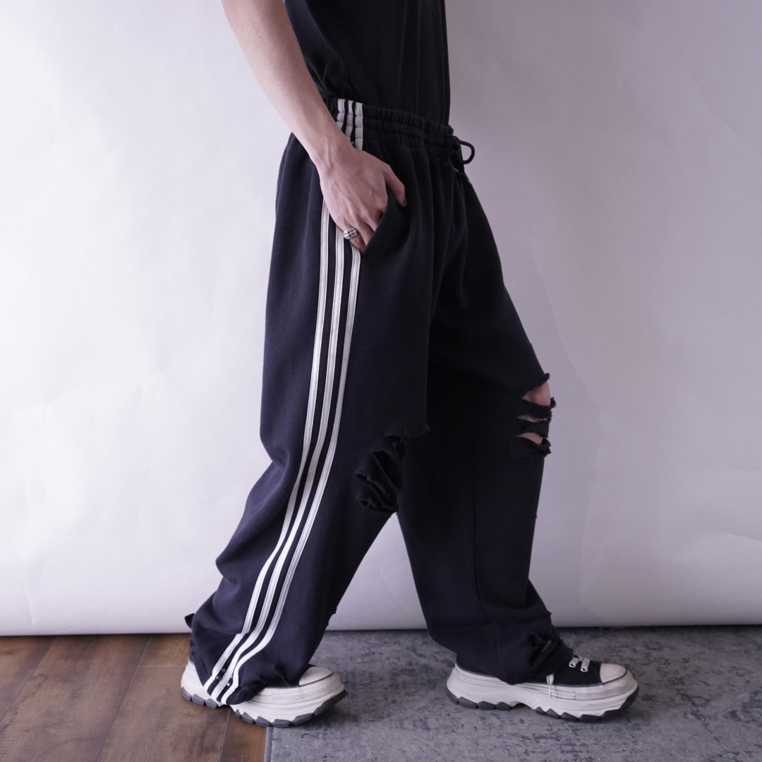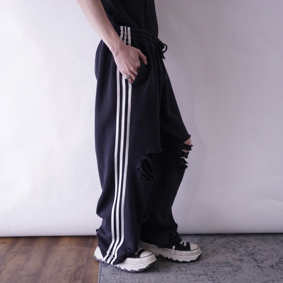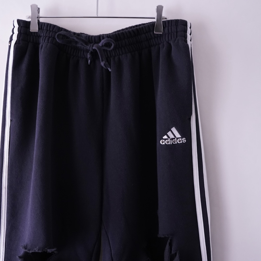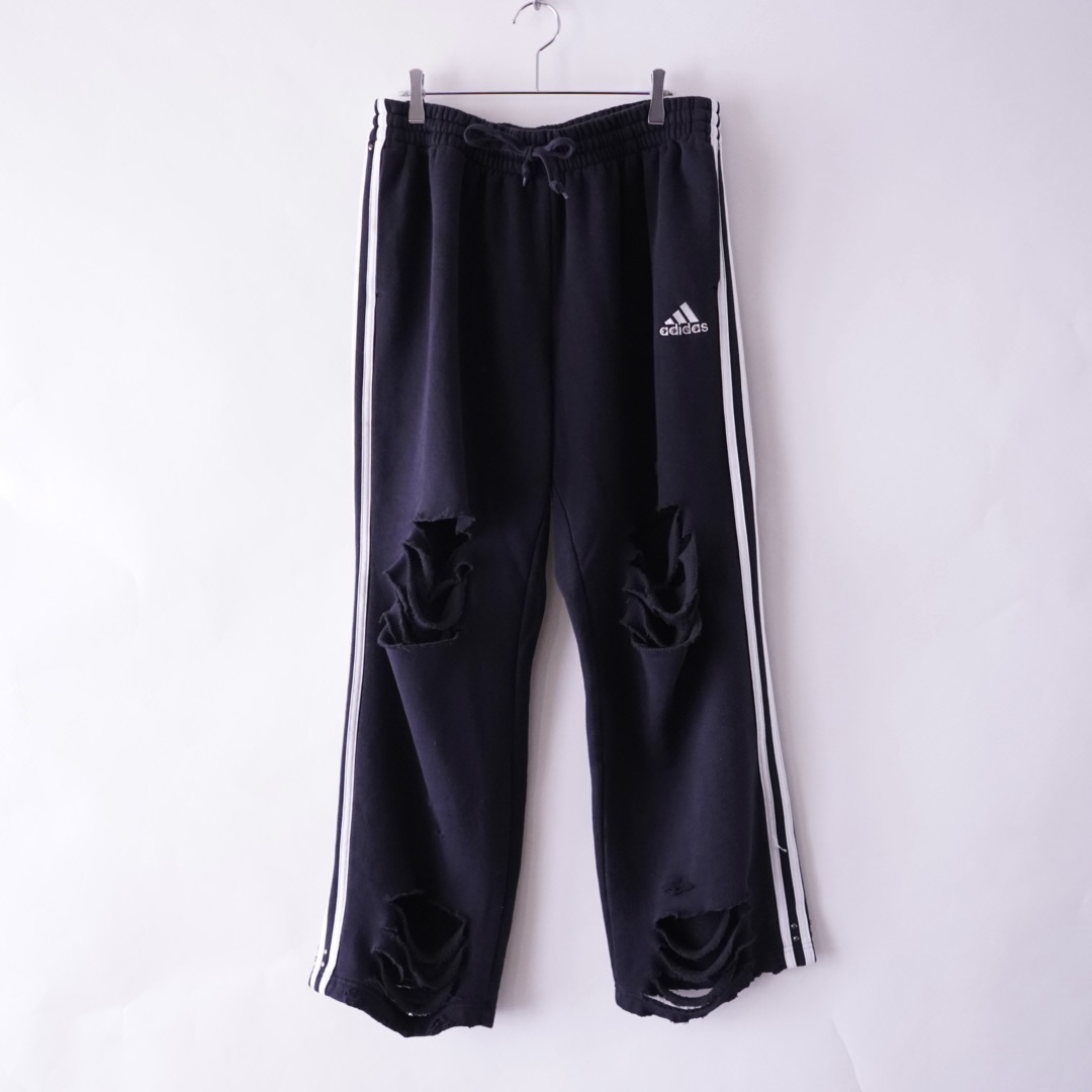 name – 【Punk Crush Remake】”adidas” BORO & studs remake black wide sweat pants