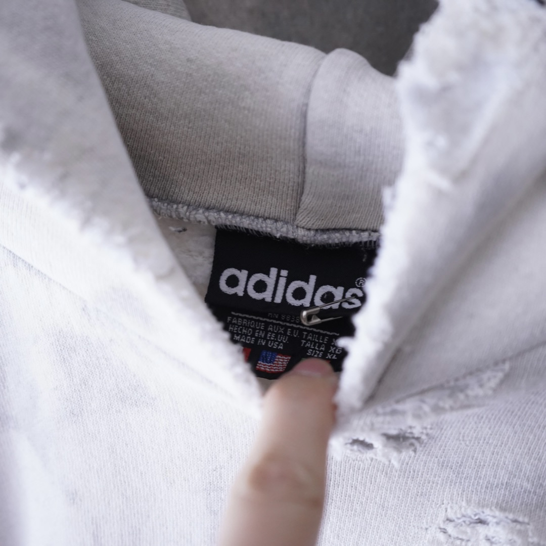 秀逸極まりない短丈かつ超ワイドなシルエットのadidasパーカー。