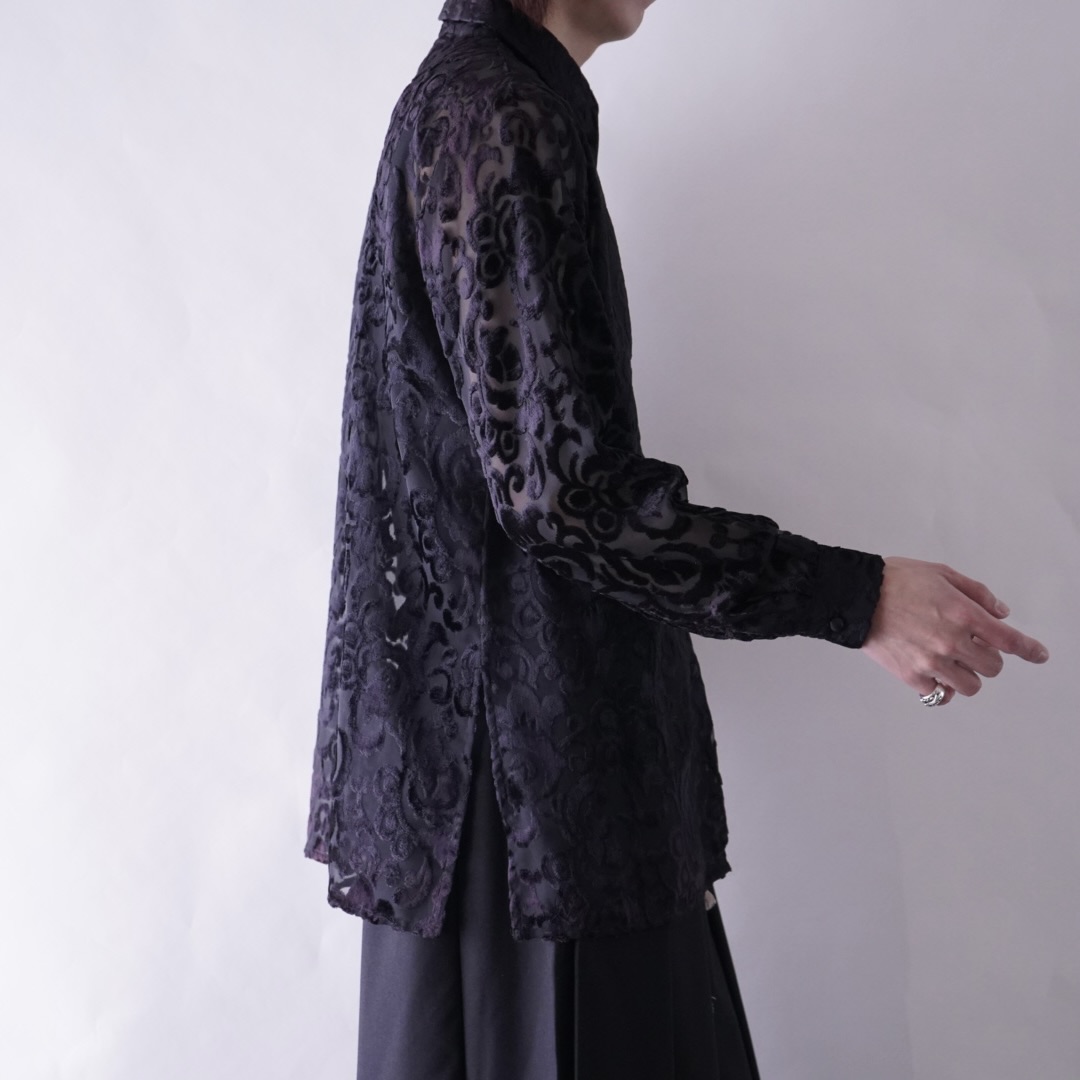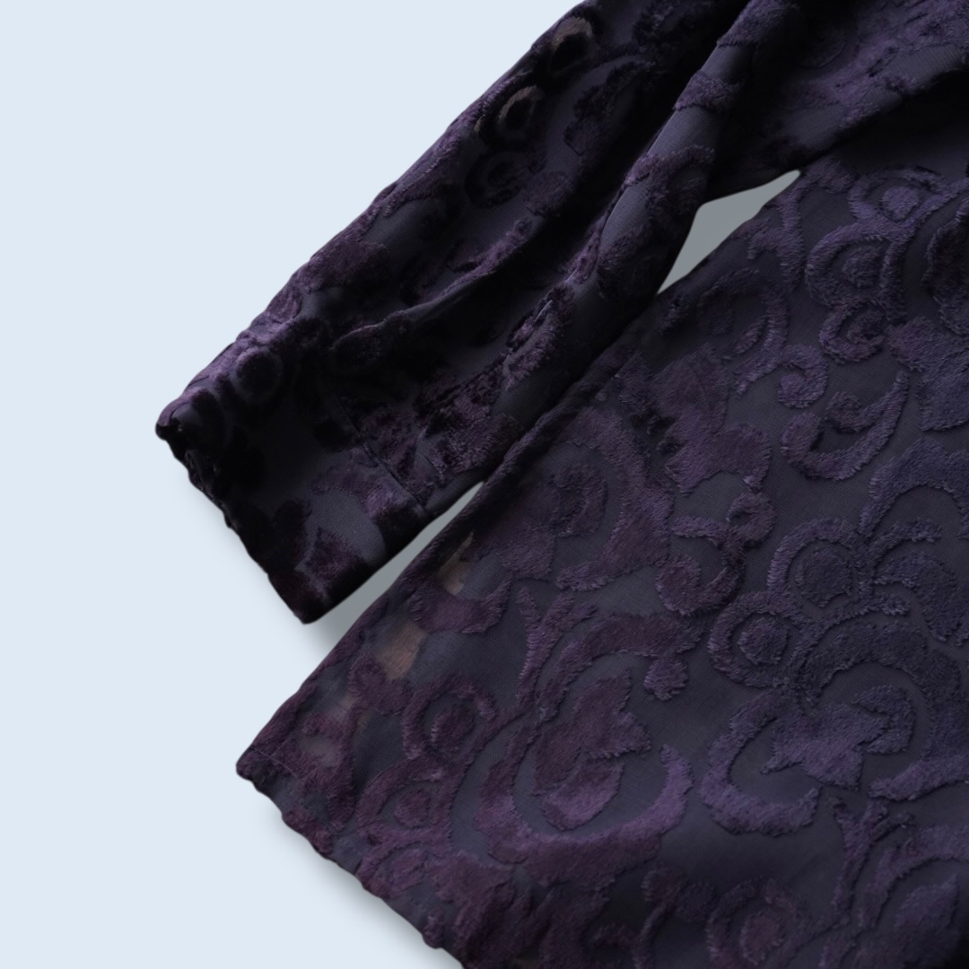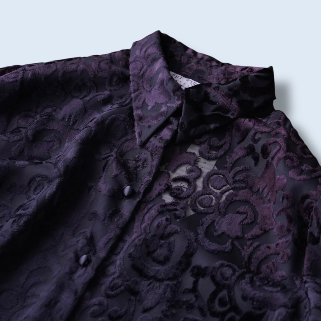 burgundy color velours × see-through shirt