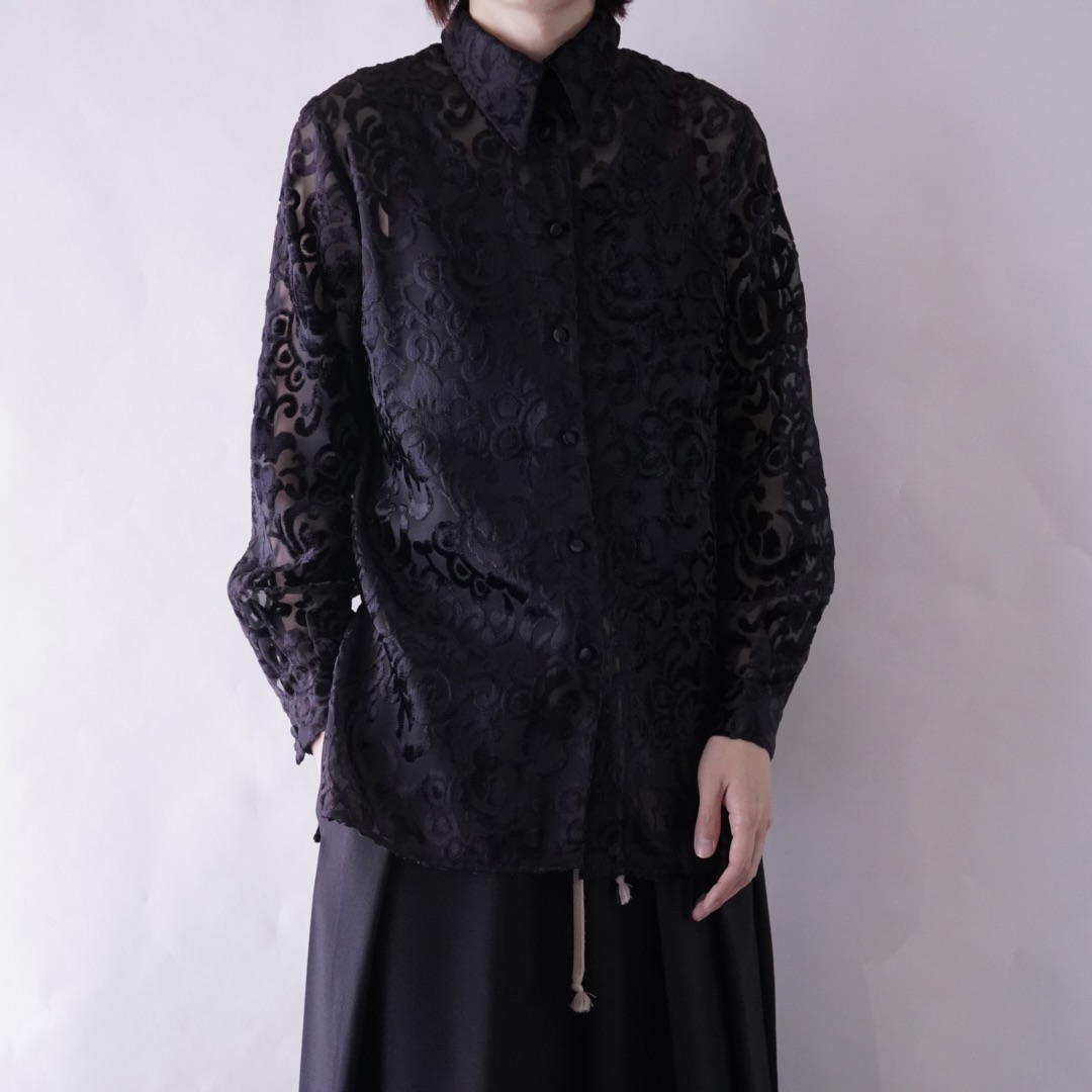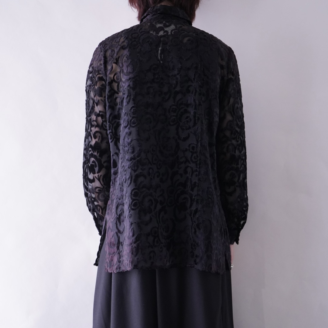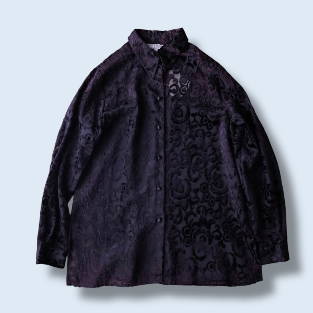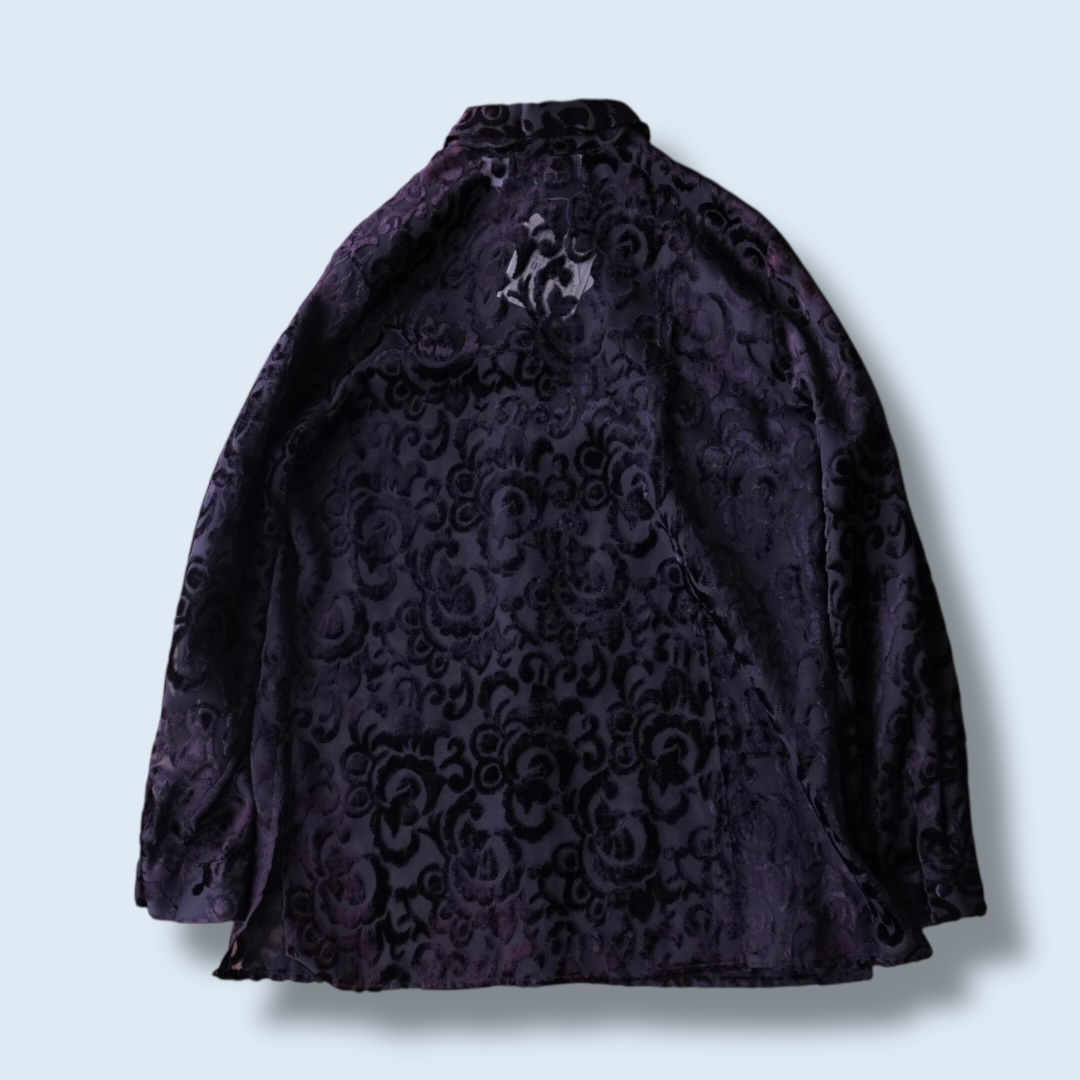 burgundy color velours × see-through shirt