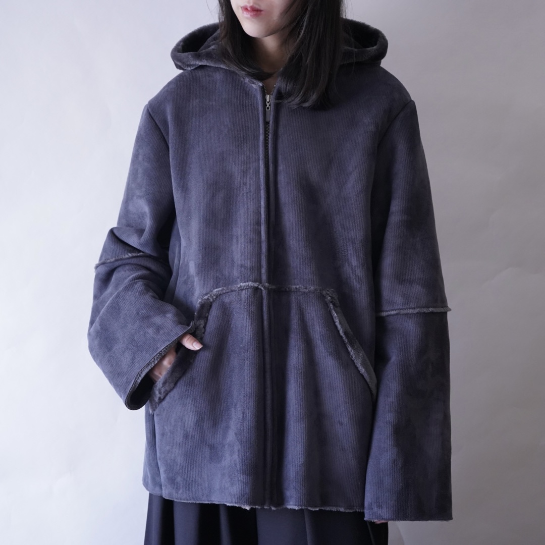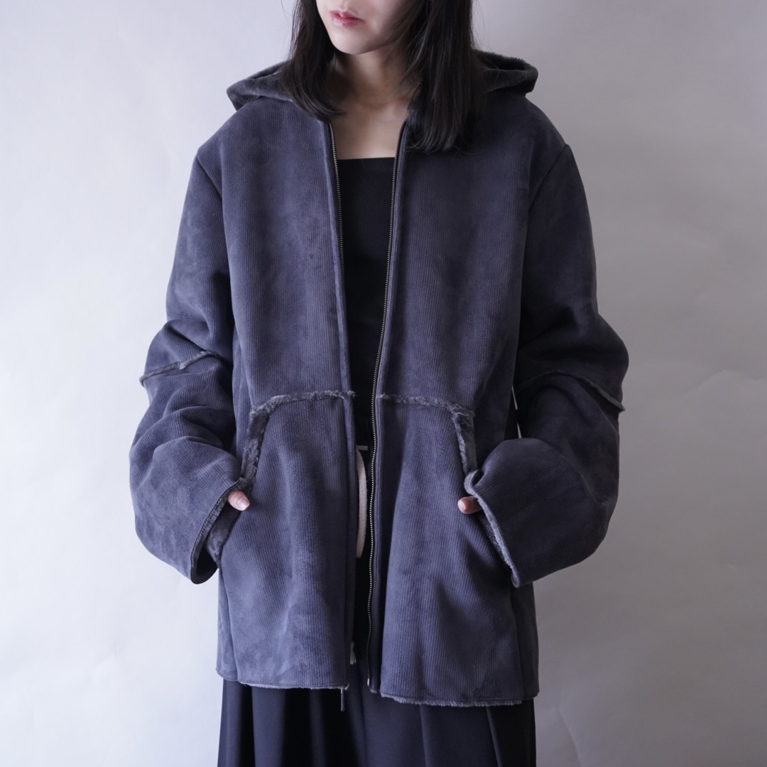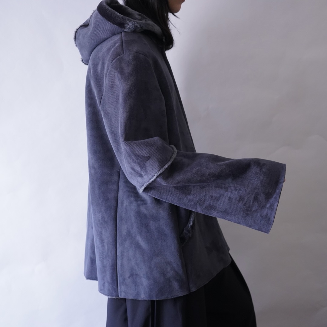 dusty blue color fake mouton hooded jacket