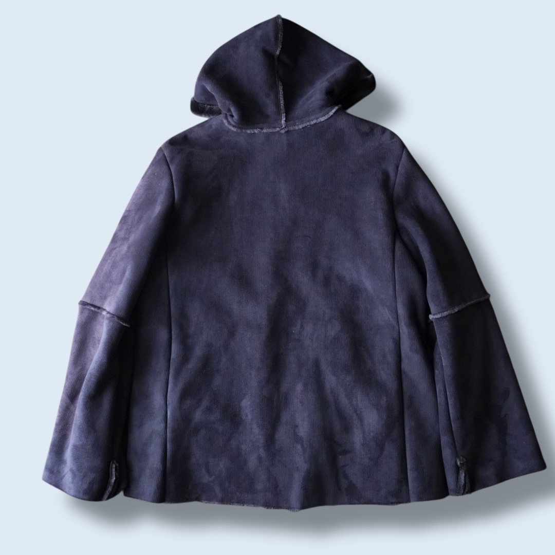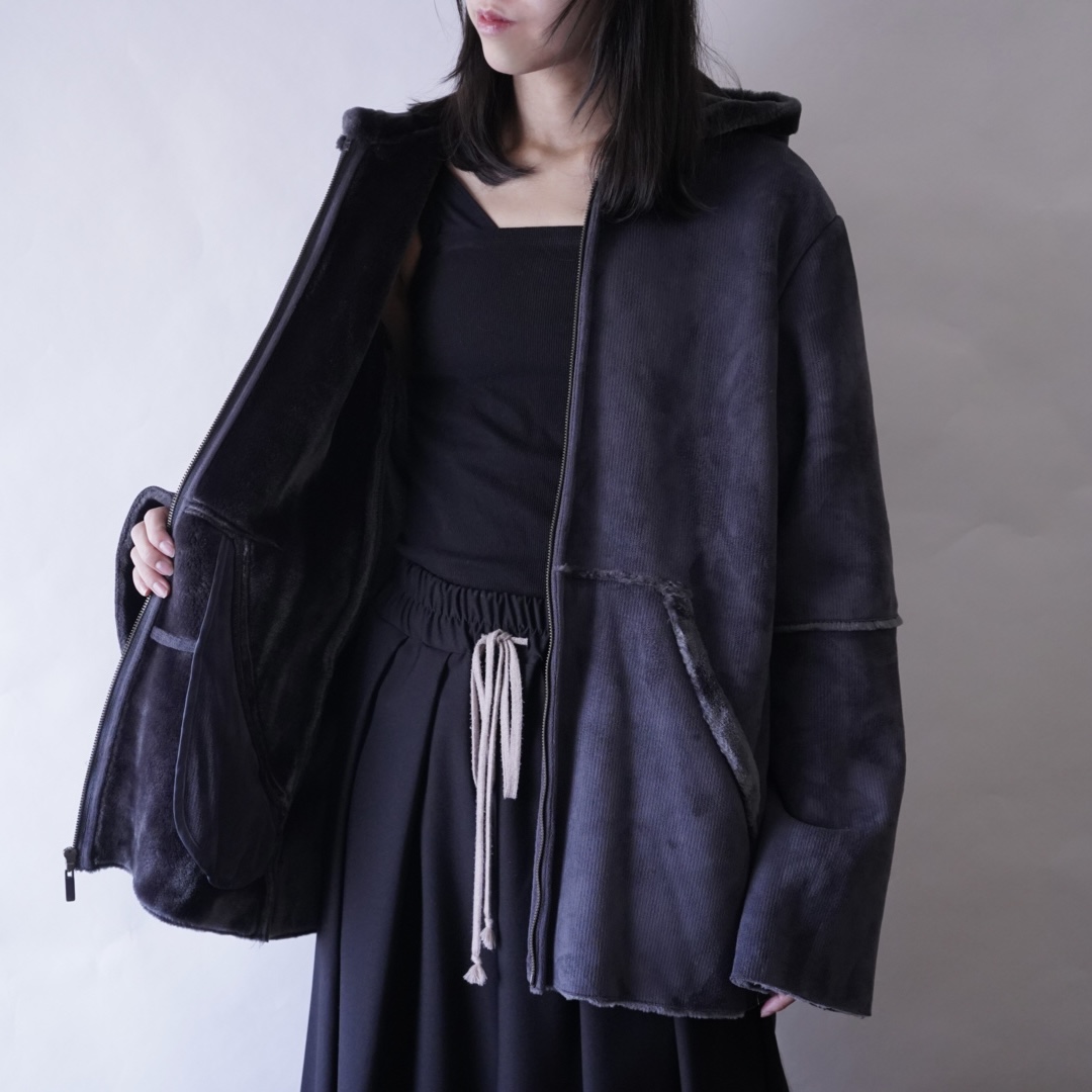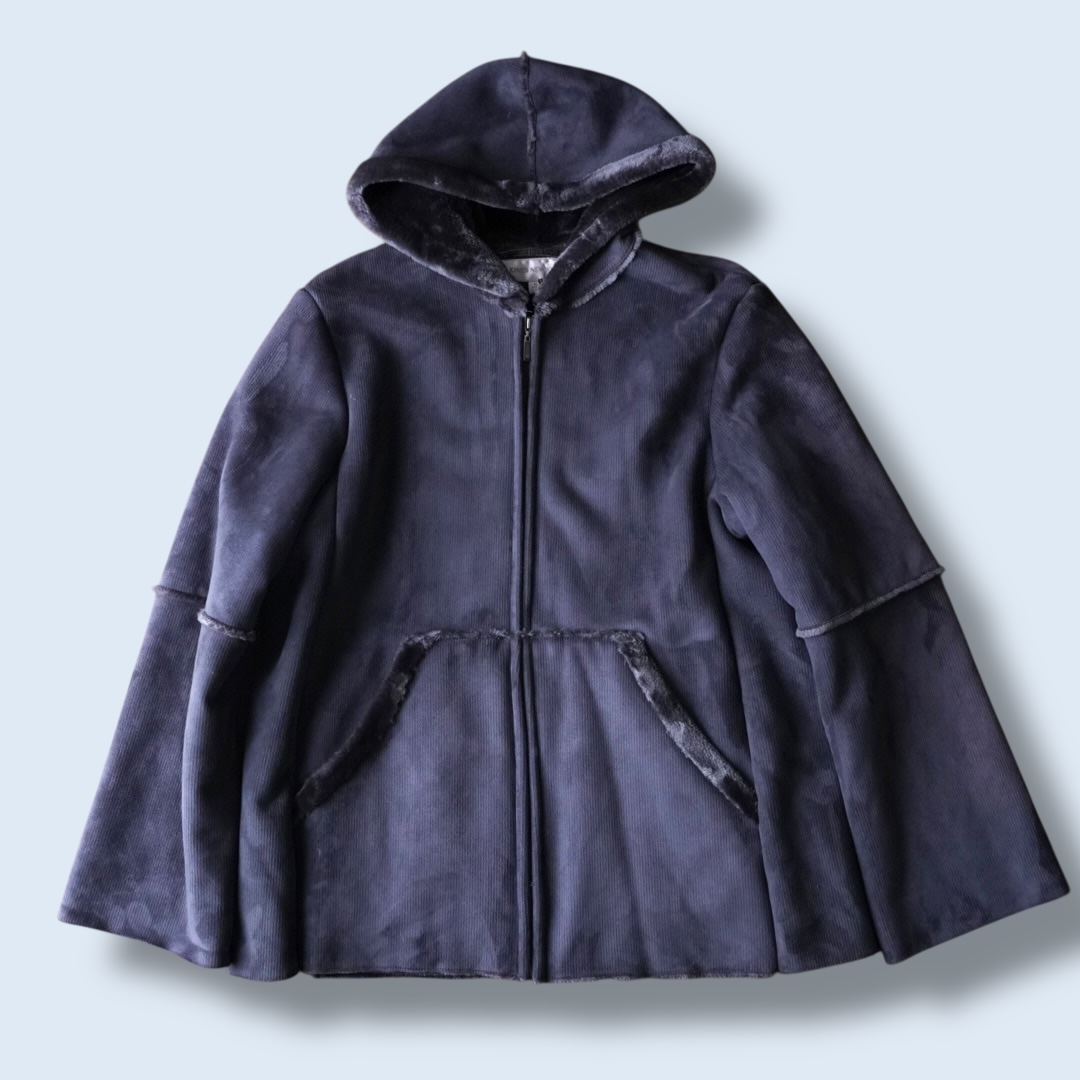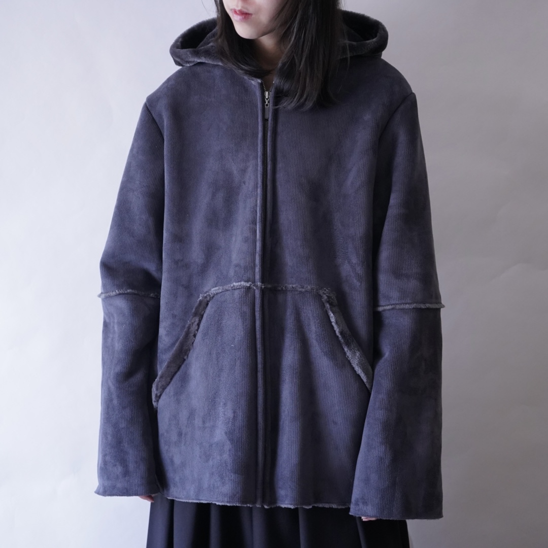 dusty blue color fake mouton hooded jacket