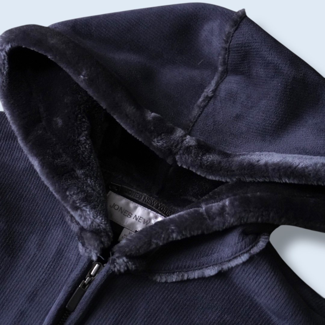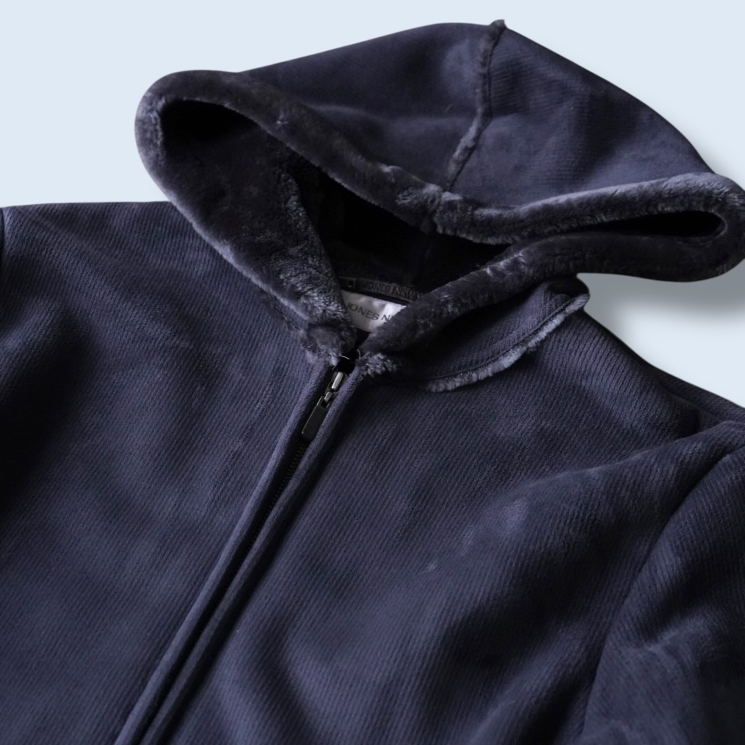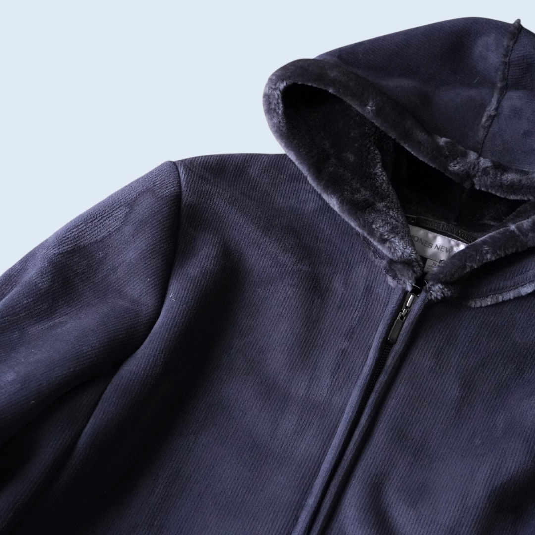 name – dusty blue color fake mouton hooded jacket