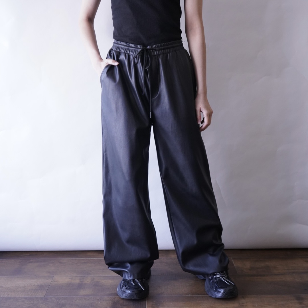 name – glossy fake leather easy wide pants