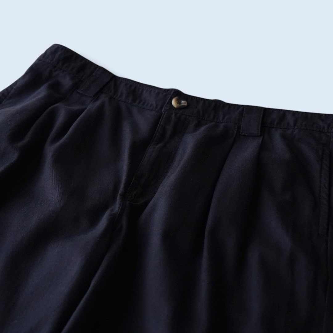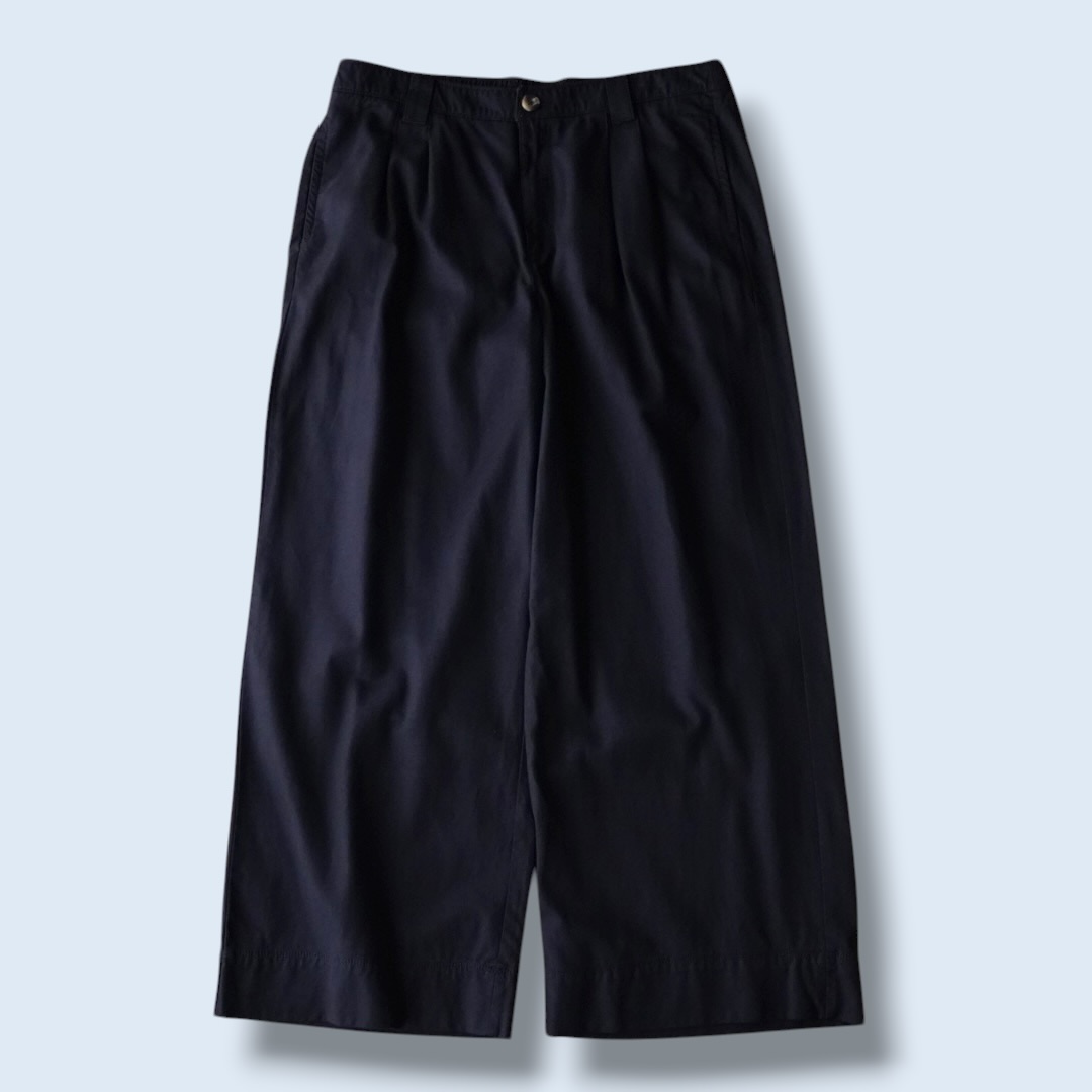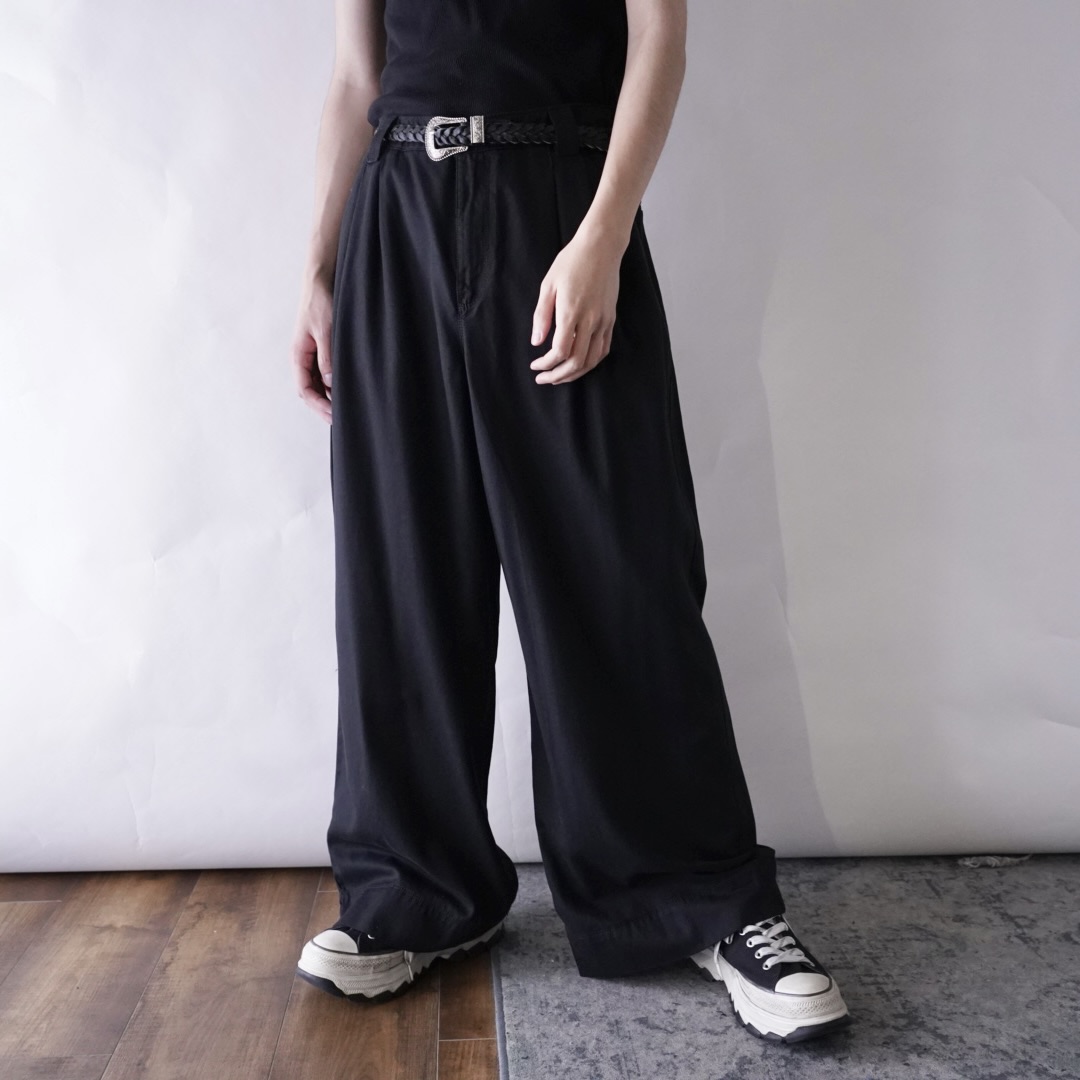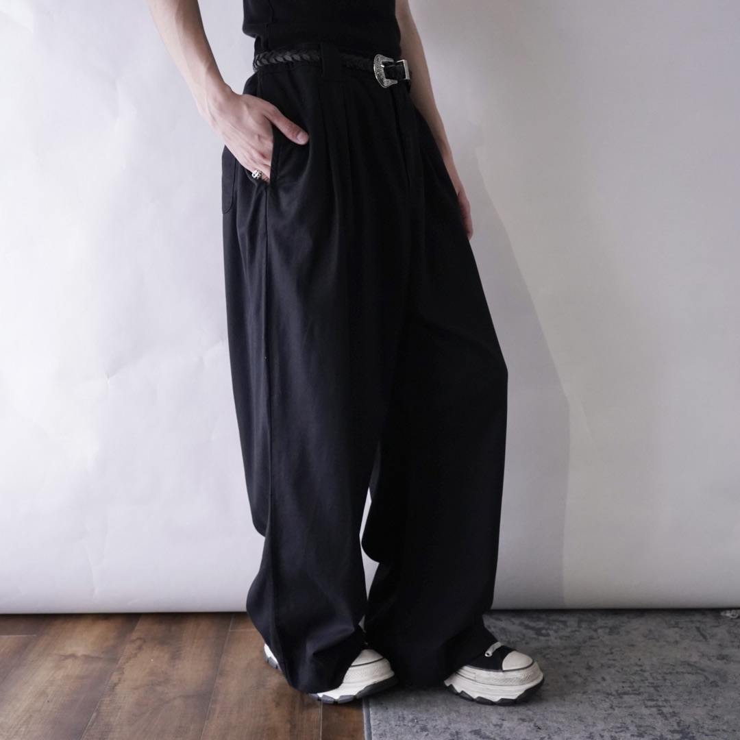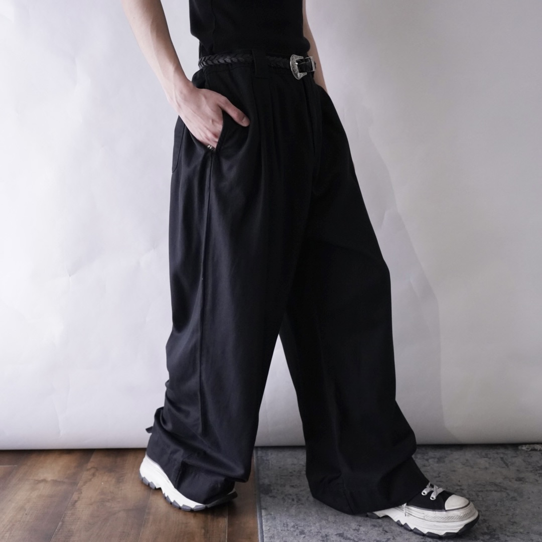 袴パンツを思わせるほどのワイドなシルエットのスラックス。