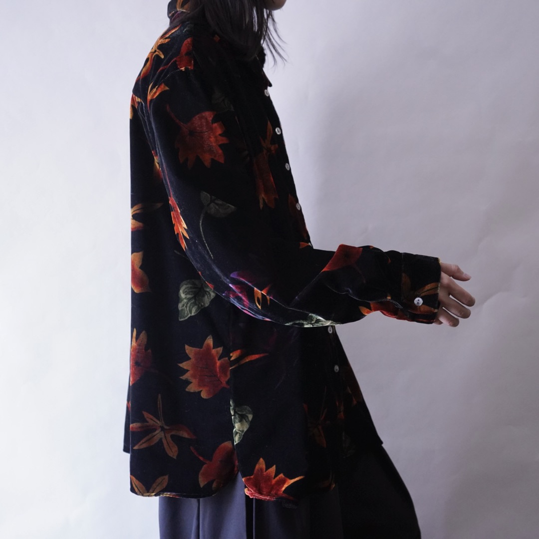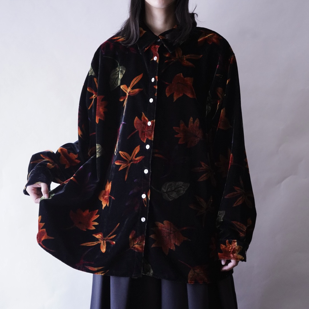 oversized glossy leaf velours shirt
