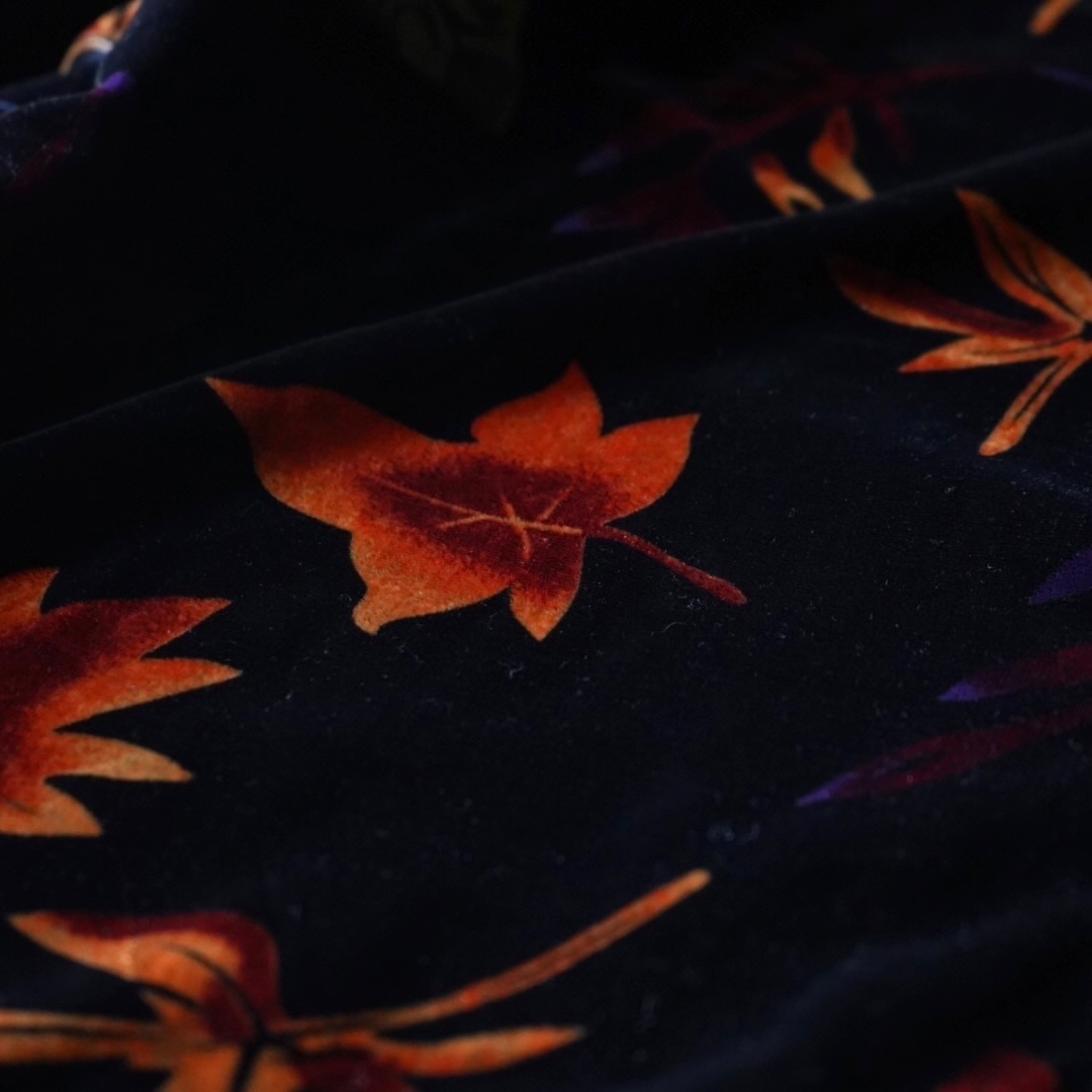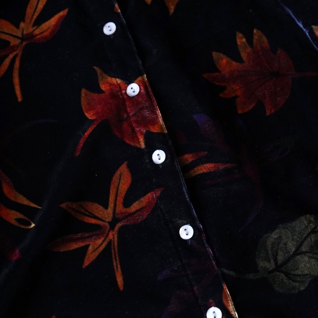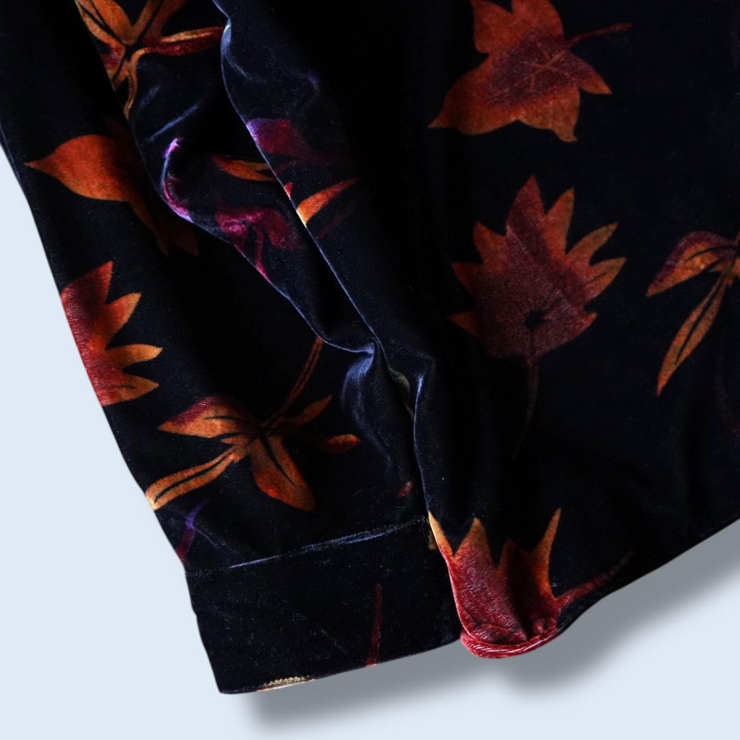 光沢感と陰影が強く立ち上がる、上質なベロア生地の総柄シャツ。