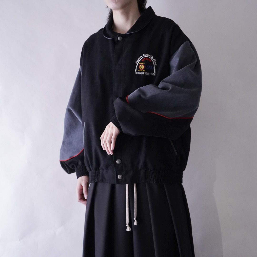 switching short length one point logo blouson jacket